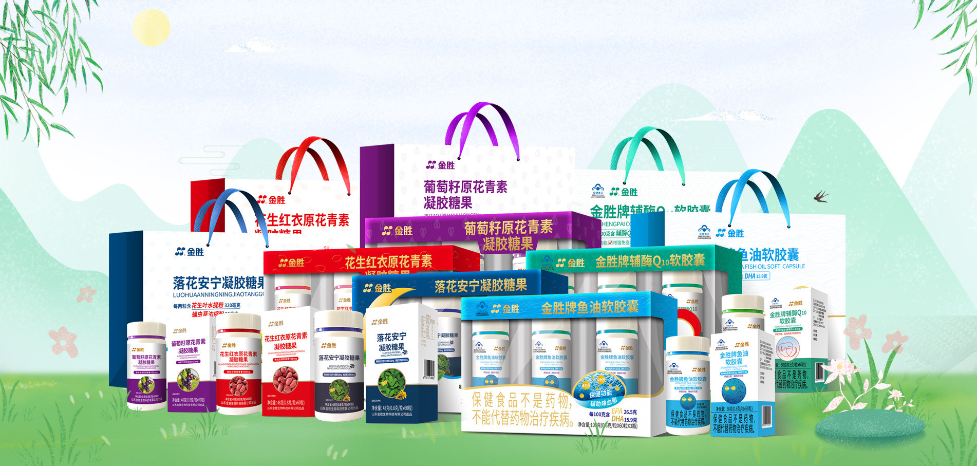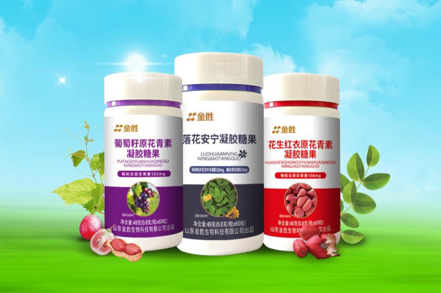 公司主要產品及經營項目有:花生紅衣提取物、花生葉提取物、葡萄籽提取物、葡萄皮提取物等保健食品原料以及魚油軟膠囊、輔酶Q10軟膠囊等保健產品;軟膠囊、硬膠囊、粉劑等各類產品OEM代工。主要明星產品有金勝落花安寧凝膠糖果、花生紅衣原花青素凝膠糖果和葡萄籽原花青素凝膠糖果。